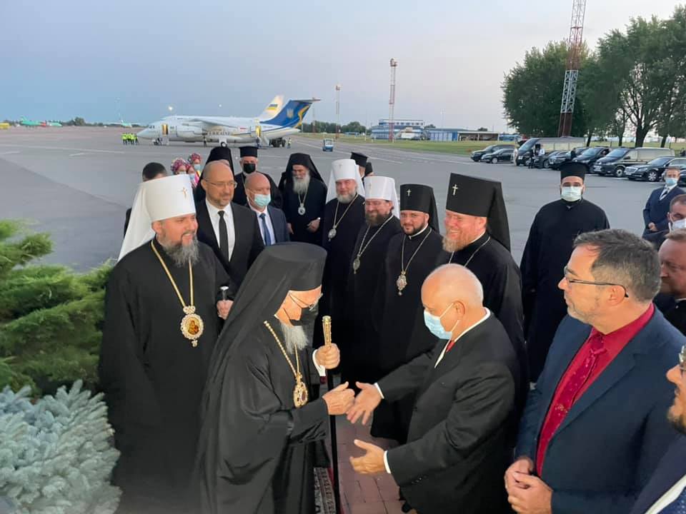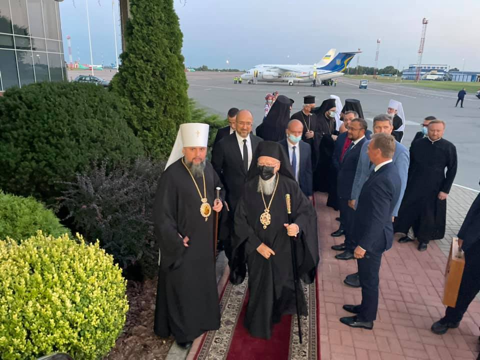 Ο Πρωθυπουργός της Ουκρανίας Εξοχ. κ. Denys Shmyhal, ο Μακαριώτατος Μητροπολίτης Κιέβου και πάσης Ουκρανίας κ. Επιφανιος και πλήθος Πολιτειακών, Κυβερνητικών και εκκλησιαστικών παραγόντων υποδέχθηκαν πριν λίγο στο Διεθνές Αεροδρόμιο του Κιέβου τον Παναγιώτατο Οικουμενικό Πατριάρχη κ.κ. Βαρθολομαιο, ο οποίος επισκέπτεται επισήμως την χώρα προσκεκλημένος του Προέδρου της Ουκρανίας Εξοχ. κ. Volodymyr Zelenskyy και του Προκαθημένου της Ορθοδόξου Εκκλησίας της Ουκρανίας.