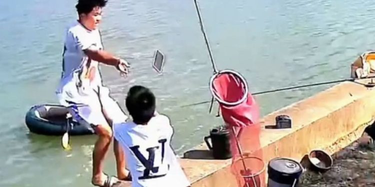Από τις γνωστές χαζομάρες των πιτσιρικάδων στις εκδρομές που σπρώχνουν στο νερό μέλος της παρέας…