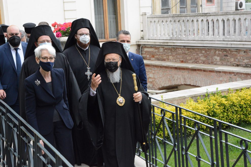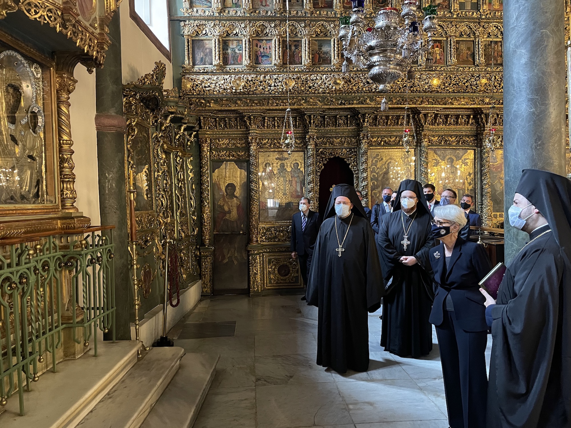 Το Οικουμενικό Πατριαρχείο επισκέφθηκε σήμερα, Σάββατο, 29 Μαΐου 2021, η Αναπληρώτρια Υπουργός Εξωτερικών των Ηνωμένων Πολιτειών Αμερικής, Εξοχ. κυρία Wendy R. Sherman, ο οποία έγινε δεκτή με ιδιαίτερη τιμή. Στα προπύλαια του Πατριαρχείου την Εξοχ. κ. Υπουργό, η οποία συνοδευόταν από τον Πρέσβη των ΗΠΑ στην Άγκυρα Εξοχ. κ. David Satterfield και συνεργάτες της, καλωσόρισαν οι Πανοσιολ. Μ. Πρωτοσύγκελλος κ. Θεόδωρος, Αρχιμ. κ. Γρηγόριος, Αρχιγραμματέας της Αγίας και Ιεράς Συνόδου, και Μ. Σύγκελλος κ. Ιάκωβος. Ακολούθως, η κυρία Sherman, ο κ. Satterfield και οι συνοδοί τους, επισκέφθηκαν τον πάνσεπτο Πατριαρχικό Ναό.