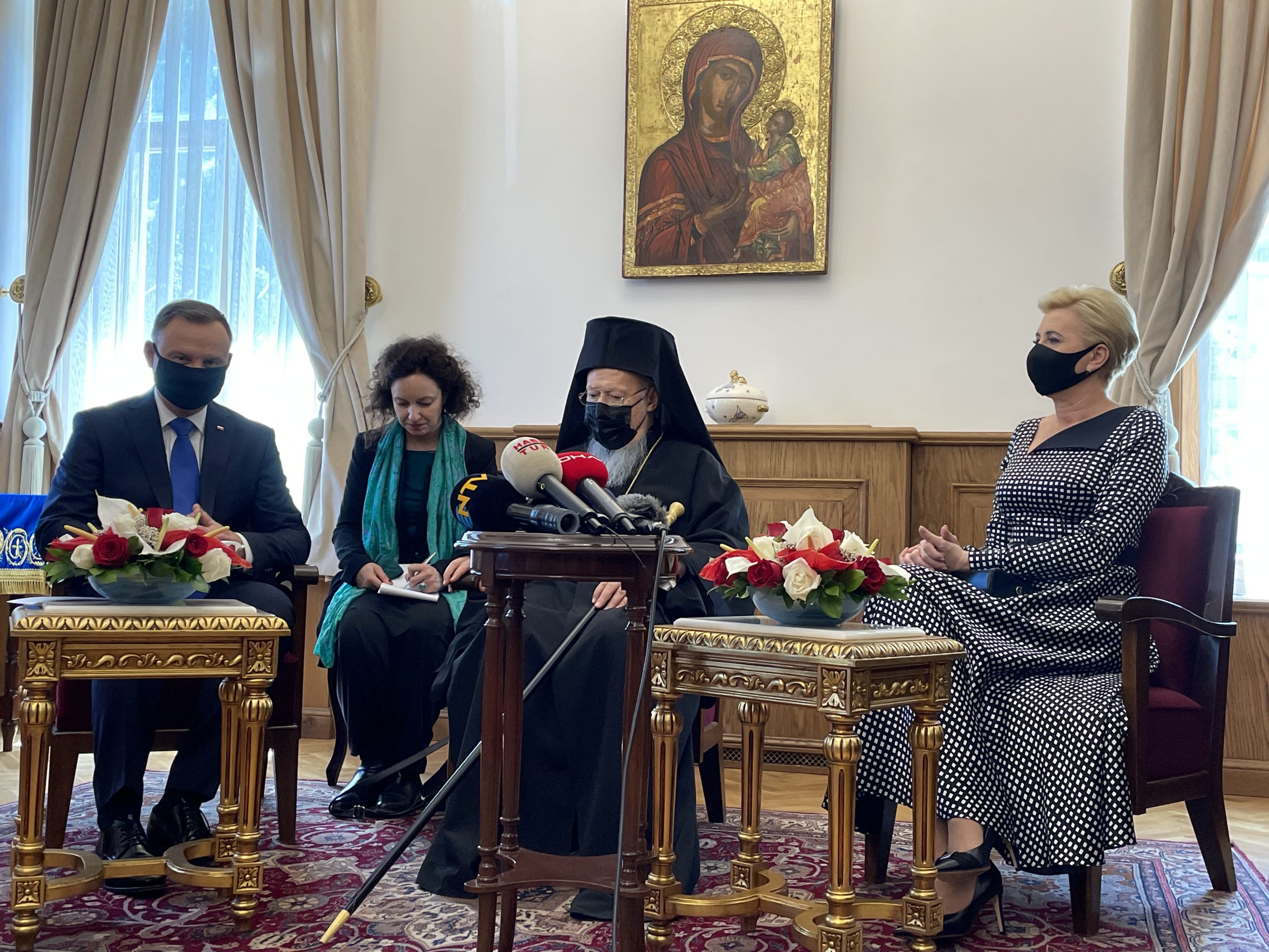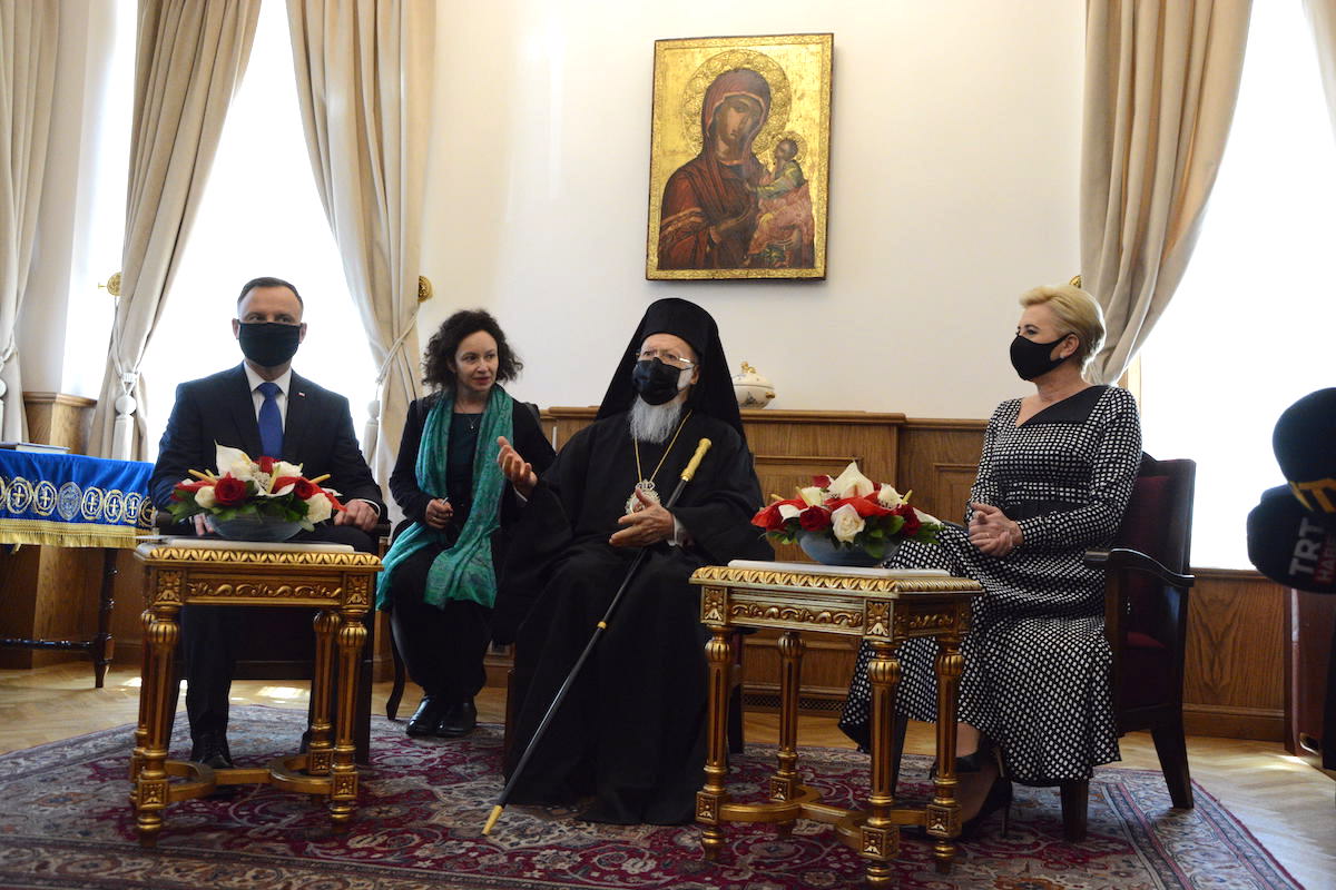 Ο Παναγιώτατος και ο Εξοχ. Πρόεδρος συζήτησαν για τη διακονία, τις πρωτοβουλίες και τις δράσεις του Οικουμενικού Θρόνου, για την Ορθοδοξία στον κόσμο, αλλά και για την πορεία του διαχριστιανικού διαλόγου. Ο Παναγιώτατος αναφέρθηκε στη σημαντική προσφορά της Ορθοδόξου Εκκλησίας της Πολωνίας, στην οποία απονεμήθηκε καθεστώς Αυτοκεφαλίας από το Οικουμενικό Πατριαρχείο το 1924, και με συγκίνηση θυμήθηκε την επίσκεψή του στη Βαρσοβία, το 2015, όταν, ύστερα από πρόσκληση του Μακαριωτάτου Μητροπολίτου Βαρσοβίας και πάσης Πολωνίας κ. Σάββα, έθεσε τον θεμέλιο λίθο του μεγαλοπρεπούς Ναού της του Θεού Σοφίας, ο οποίος υπενθυμίζει τους μακραίωνας και ακατάλυτους δεσμούς της θυγατέρας Εκκλησίας της Πολωνίας με την Μητέρα της Εκκλησία της Κωνσταντινουπόλεως. Ακόμα, είχαν την ευκαιρία να συζητήσουν θέματα ευρύτερου ενδιαφέροντος, όπως οι πρωτοβουλίες του Οικουμενικού Θρόνου για την ευαισθητοποίηση της παγκόσμιας Κοινής Γνώμης περί της ανάγκης διαφυλάξεως της Δημιουργίας και της προστασίας του φυσικού περιβάλλοντος, αλλά και η σημασία που έχουν οι χριστιανικές αξίες και παραδόσεις στη διαμόρφωση των συγχρόνων κοινωνιών.