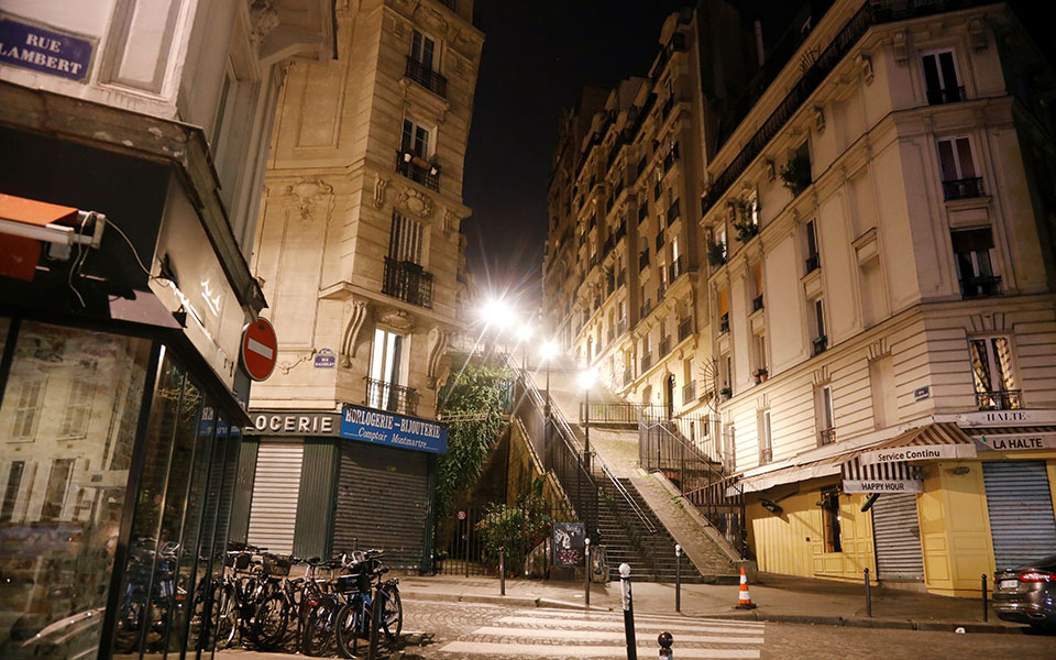 Πρωτοφανείς ήταν οι σκηνές ερήμωσης στο Παρίσι και άλλες οκτώ πόλεις της Γαλλίας το βράδυ του Σαββάτου ύστερα από την επιβολή του lockdown προκειμένου να αντιμετωπιστεί η επέλαση της πανδημίας.