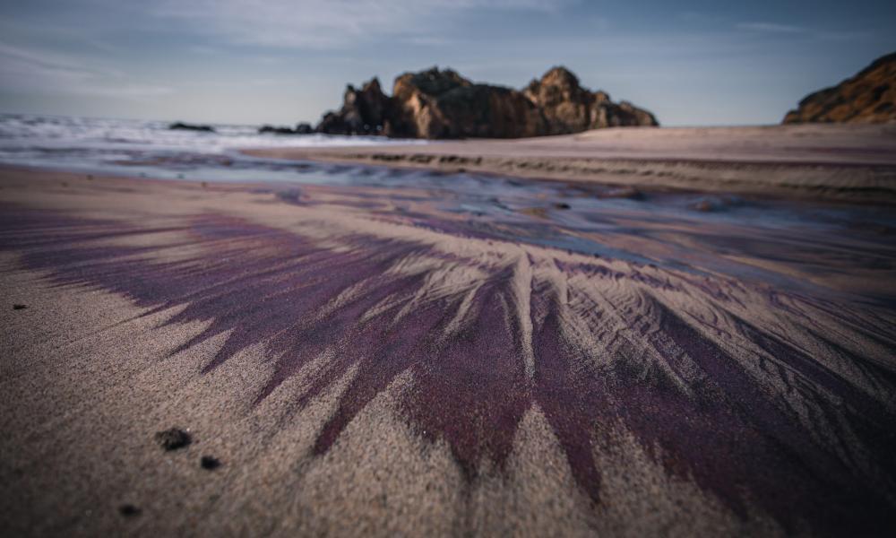 Ωστόσο, δεν είναι μόνο τα ηλιοβασιλέματα που προσελκύουν πλήθος κόσμου στην παραλία Pfeiffer. Η μωβ άμμος της παραλίας είναι από μόνη της ένα θαύμα. Αυτό το σπάνιο φαινόμενο είναι αποτέλεσμα των βράχων μαγγανίου-γρανάτη που βρίσκονται στους βράχους πάνω από την παραλία, οι οποίοι, κατά τη διάβρωση, δανείζουν το ζωηρό τους χρώμα στην άμμο που βρίσκεται από κάτω. Η αλληλεπίδραση αυτής της χρωματιστής άμμου με το φυσικό φως δημιουργεί ένα σουρεαλιστικό και μαγικό τοπίο, καθιστώντας την έναν παράδεισο για τους φωτογράφους.
