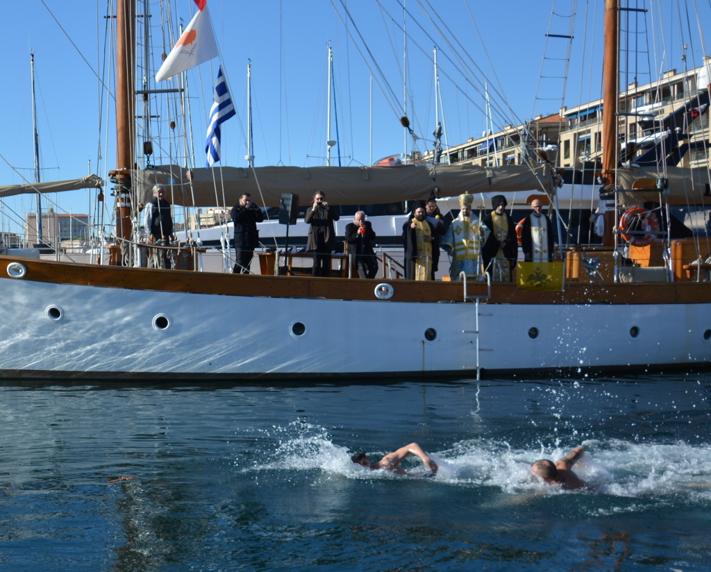 Με μεγαλοπρέπεια ετελέσθη στη Μασσαλία ο Καθαγιασμός των Υδάτων στο λιμάνι της πόλεως. Το πρωί χοροστάτησε στον Όρθρο, λειτούργησε και ετέλεσε τον Μέγα Αγιασμό ο Θεοφιλέστατος Επίσκοπος Μελιτηνής κ. Μάξιμος, συμπαραστατούμενος υπό των Αρχιμανδριτών κ. Δημητρίου Πλουμή και κ. Sébastien Garnier, καθώς και υπό του Πρεσβυτέρου π. Jean-Baptiste. Παρέστησαν οι Λιμενικές Αρχές της Μασσαλίας και εκπρόσωποι του Δήμου και των Αρχών της πόλεως.