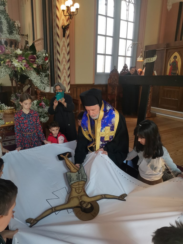 Ιστάμεθα, Αδελφοί μου, ενώπιον του “Μεγάλου Νεκρού”, για να ψάλλουμε τα εγκώμια προς τιμήν Του. Σήμερα, και εις το διηνεκές, αποκαθηλώνεται η Θυσία, η οποία τελέστηκε για τις αμαρτίες ολοκλήρου της ανθρωπότητος. Αντικρύζουμε τον Χριστό, με δάκρυα συντριβής και ευγνωμοσύνης, αναλογιζόμενοι το μέγεθος της θείας συγκαταβάσεως και ομολογούμε: “Ήπλωσας τας παλάμας και ήνωσας τα το πριν διεστώτα!”, δηλαδή συμφιλίωσες τον άνθρωπο και πάλι με τον Θεό και προς τον συνάνθρωπο πρότεινες το προσκλητήριο της θυσιαστικής αγάπης προς τον πλησίον.
