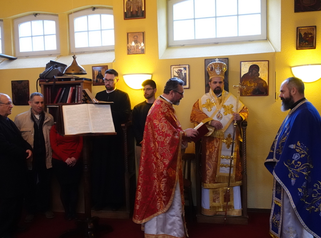 Σήμερα το πρωί ετελέσθη η Θεία Λειτουργία στον πανηγυρίζοντα Ι. Ναό των Τριών Ιεραρχών. Χοροστάτησε στον Όρθρο και προεξήρχε της Θείας Λειτουργίας ο Θεοφιλέστατος Επίσκοπος Μελιτηνής κ. Μάξιμος, συμπαραστατούμενος υπό του Προϊσταμένου του Ι. Ναού, Πρωτοπρεσβυτέρου Χρήστου Φιλιώτη και του Προϊσταμένου της Βουλγαρικής Ορθόδοξης Ενορίας Στρασβούργου Πρωτοπρεσβυτέρου Georgi Georgiev. Ο Επίσκοπος Μελιτηνής ομίλησε για το έργο των Τριών Ιεραρχών και μετέφερε στο εκκλησίασμα τις ευχές του Σεβασμιωτάτου Μητροπολίτου Γαλλίας κ. Εμμανουήλ.