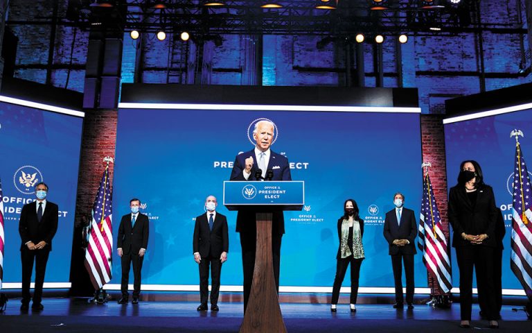 Σε μια δημόσια εκδήλωση, στο Γουίλμινγκτον του Ντέλαγουερ, ο Τζο Μπάιντεν, συνοδευόμενος από την εκλεγμένη αντιπρόεδρο Κάμαλα Χάρις, παρουσίασε τα πρόσωπα που επέλεξε για τα βασικά αξιώματα στον τομέα της εξωτερικής πολιτικής και της εθνικής ασφάλειας. «Η Αμερική επιστρέφει», δήλωσε χαρακτηριστικά, τονίζοντας ότι οι συνεργάτες του «είναι έτοιμοι να ηγηθούν στον κόσμο, όχι να αποσυρθούν από αυτόν». Σημείωσε δε τις «πρωτιές» που σηματοδοτούν οι επιλογές του: για πρώτη φορά μια γυναίκα, η Αβρίλ Χέινς, θα ηγηθεί των μυστικών υπηρεσιών, ένας ισπανόφωνος μετανάστης, ο Αλεχάντρο Μαγιόρκας, θα αναλάβει το υπουργείο Εσωτερικής Ασφάλειας και μια Αφροαμερικανή, η Λίντα Τόμας-Γκρίνφιλντ θα είναι η πρέσβειρα των ΗΠΑ στον ΟΗΕ. Στα 43 του χρόνια, ο Τζέικ Σάλιβαν θα είναι ο νεαρότερος σύμβουλος Εθνικής Ασφαλείας εδώ και πολλές δεκαετίες, ενώ το υπουργείο Εξωτερικών θα αναλάβει ο πιστός συνεργάτης του Αντονι Μπλίνκεν.