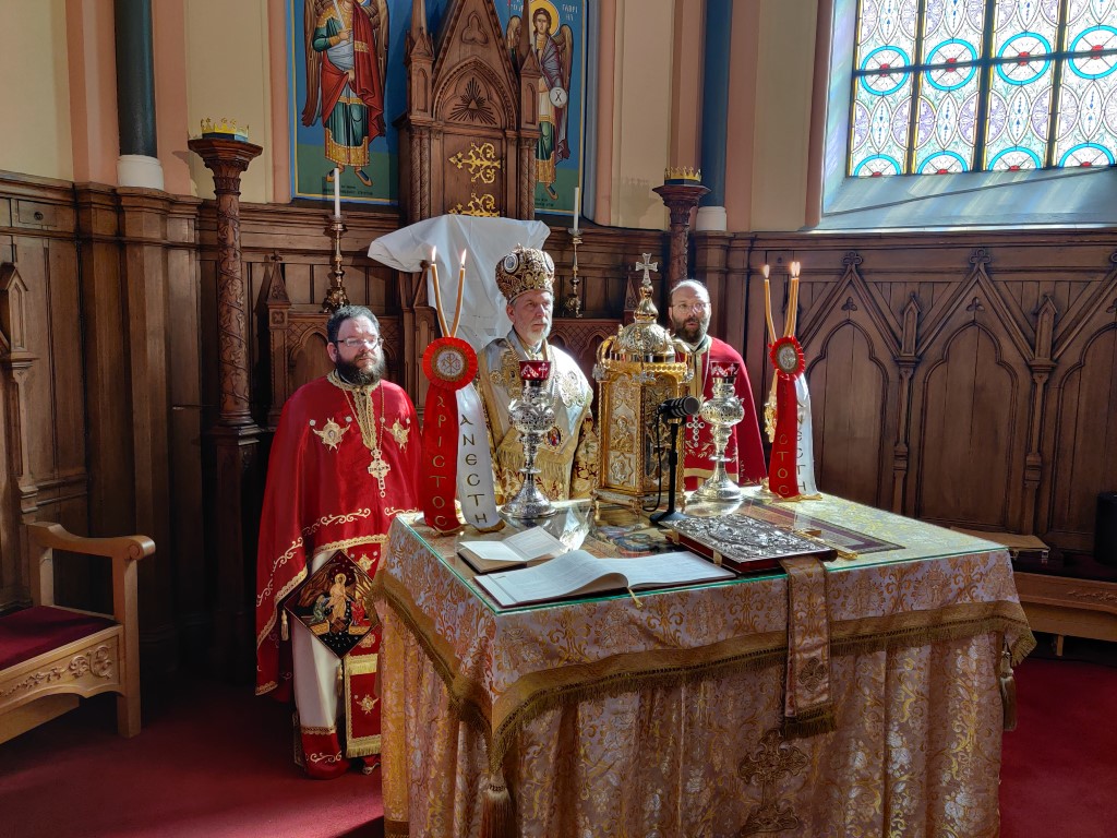 Ανήμερα της εορτής, Κυριακή του Θωμά, 23 Απριλίου, τελέστηκε αρχιερατική Θεία Λειτουργία στον πανηγυρίζοντα Καθεδρικό Ναό, προεξάρχοντος του σεπτού Ποιμενάρχου και με τη συμμετοχή των ως άνω κληρικών.