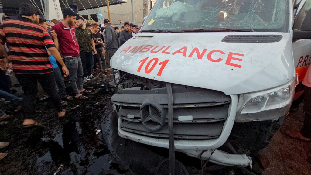 Ο ισραηλινός στρατός (IDF) επιβεβαίωσε χτύπημα σε ασθενοφόρο, δηλώνοντας ότι «χρησιμοποιούνταν από τη Χαμάς». Εκπρόσωπος του στρατού πρόσθεσε ότι «ένας αριθμός» εξτρεμιστών της Χαμάς σκοτώθηκε από το χτύπημα. Νωρίτερα, αξιωματούχος του ισραηλινού στρατού δήλωσε στο Sky News, ότι στο συγκεκριμένο κονβόι «υπήρχαν τρομοκράτες». Το Ισραήλ έχει δηλώσει στο παρελθόν ότι το κύριο κέντρο διοίκησης της Χαμάς βρίσκεται κάτω από το εν λόγω νοσοκομείο.