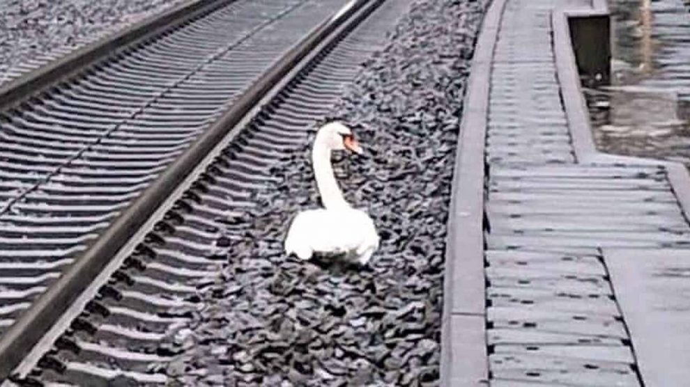 Ένας κύκνος που πενθούσε τον θάνατο του ταιριού του πάνω στις ράγες των γερμανικών σιδηροδρόμων διέκοψε την κυκλοφορία είκοσι και πλέον τρένων για σχεδόν μια ώρα, προτού τελικά τον απομακρύνουν πυροσβέστες, ανακοίνωσε η αστυνομία.
