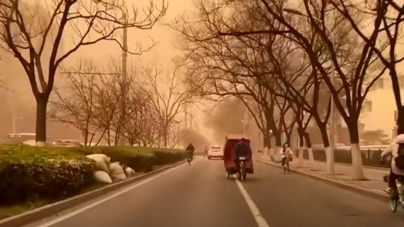 Σύμφωνα με τα όσα έχουν δει το φως της δημοσιότητας, το σκηνικό αυτό οφείλεται στους ισχυρούς ανέμους που έφεραν άμμο από την Μογγολία και άλλες περιοχές της βορειοδυτικής Κίνας, κάνοντας τον αέρα ακατάλληλο για αναπνοή.