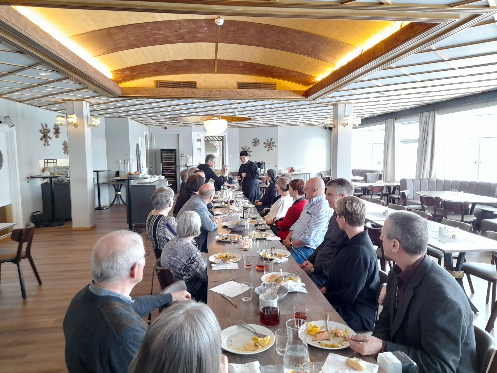 Aκολούθησε γεύμα σε εστιατόριο της περιοχής και το απόγευμα της ιδίας, ο Σεβασμιώτατος ανεχώρησε για την έδρα της Επαρχίας του στην Στοκχόλμη, ο δε π. Αλέξανδρος για το Όσλο.