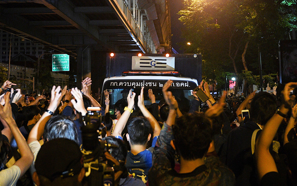 Στους δρόμους της Μπανγκόκ κατέβηκαν και χθες Ταϊλανδοί διαδηλωτές, παρά την κατάσταση εκτάκτου ανάγκης που έχει κηρυχθεί στην πόλη, απαιτώντας την άμεση απελευθέρωση των συλληφθέντων κατά τις διαδηλώσεις της Τετάρτης. Πολλοί από τους διαδηλωτές είχαν σηκώσει τα χέρια τους σε χαιρετισμό με τρία δάκτυλα, κάτι που συμβολίζει το φοιτητικό κίνημα που διαμαρτύρεται. Νωρίτερα χθες, εκτός από την κατάσταση εκτάκτου ανάγκης στη Μπανγκόκ, επιβλήθηκαν και άλλα δρακόντεια μέτρα με στόχο την καταστολή των διαδηλώσεων χιλιάδων πολιτών που ζητούν τον εκδημοκρατισμό στη χώρα. Οι αστυνομικές δυνάμεις προχώρησαν στη σύλληψη τουλάχιστον είκοσι ατόμων, μεταξύ των οποίων οι ηγετικές μορφές του δημοκρατικού κινήματος.