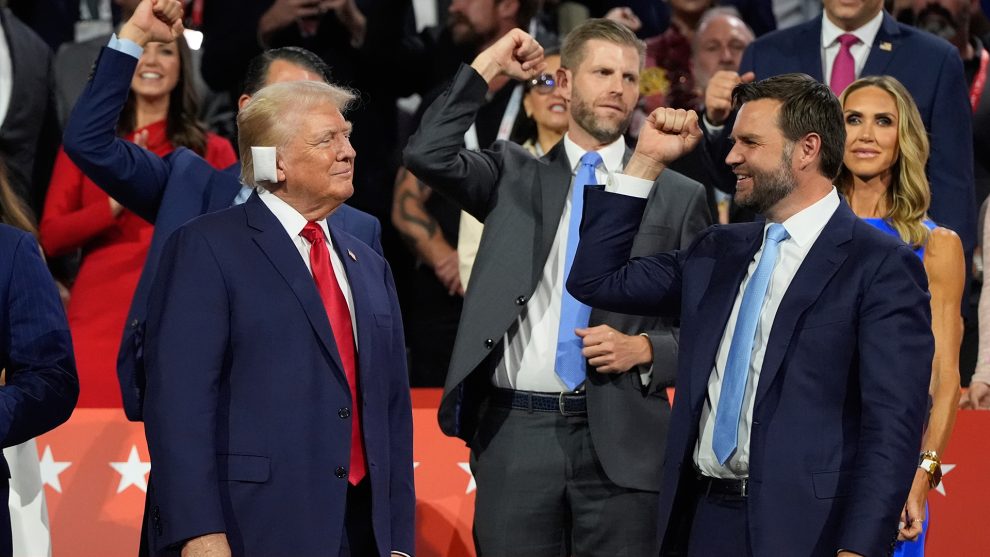 Λίγη ώρα μετά την ανακοίνωση του 40χρονου Βανς ως υποψηφίου αντιπροέδρου, το Εθνικό Συνέδριο των Ρεπουμπλικανών απένειμε επισήμως το χρίσμα του κόμματος για τις προεδρικές εκλογές του Νοεμβρίου στον Ντόναλντ Τραμπ. Ο Τραμπ έκανε, με επίδεσμο στο αυτί, θριαμβευτική είσοδο στο συνέδριο της παράταξής του στο Μιλγουόκι, υπό εκκωφαντικές επευφημίες των παριστάμενων, που σηκώθηκαν όρθιοι.