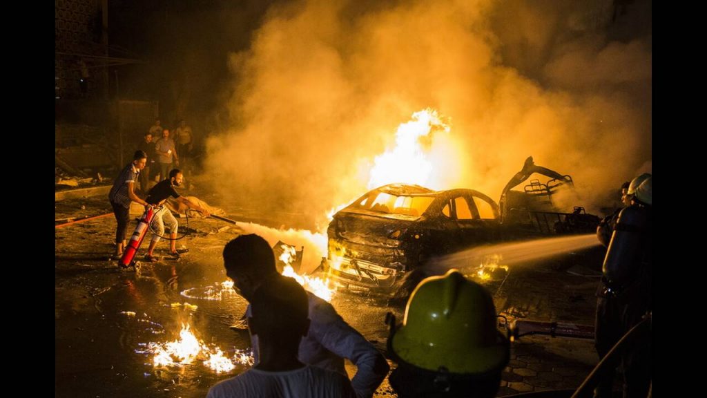 Όχημα που μπήκε στο αντίθετο ρεύμα κυκλοφορίας στην παραλιακή οδό του Καΐρου και συγκεκριμένα μπροστά στο αιγυπτιακό Εθνικό Ινστιτούτο για τον Καρκίνο, συγκρούστηκε με άλλα τρία αυτοκίνητα με αποτέλεσμα να προκληθεί έκρηξη.