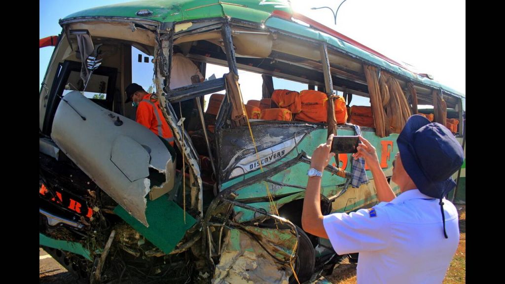 Το δυστύχημα σημειώθηκε τα ξημερώματα της Δευτέρας (17/06), όταν το πούλμαν έπεσε σε δύο αυτοκίνητα και σε ένα φορτηγό στην περιοχή της Δυτικής Ιάβας.