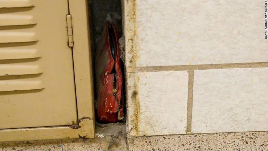 Η κόκκινη τσάντα, καλυμμένη από σκόνη, είχε εντοπιστεί τον περασμένο Μάιο από έναν φύλακα στην προσπάθειά του να στερεώσει καλύτερα το ντουλάπι στο γυμνάσιο North Canton του Οχάιο. Τότε, το σχολείο είχε ανεβάσει φωτογραφίες της χαμένης τσάντας με στόχο να βρεθεί ο ιδιοκτήτης του.
