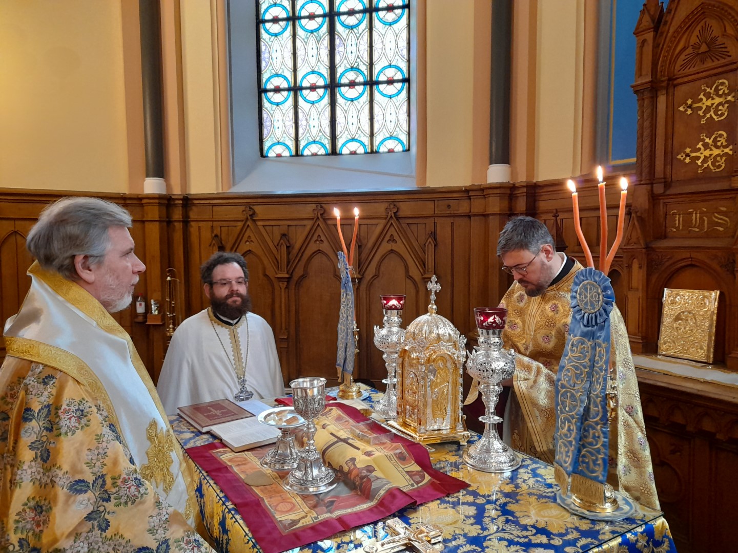 Στο τέλος της Θείας Λειτουργίας, ο Επίσκοπος τέλεσε τρισάγιο υπέρ αναπαύσεως των ψυχών των μακαριστών Πατριάρχου Σερβίας κυρού Ειρηναίου και Μητροπολίτου Λαγκαδά κυρού Ιωάννου.