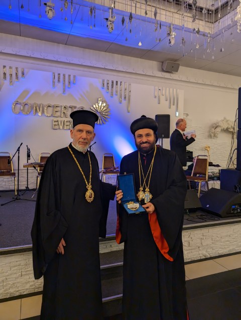 Κατά την διάρκεια της δεξιώσεως, ο Σεβασμιώτατος κ. Κλεόπας προσέφερε στο νέο Επίσκοπο αρχιερατικό εγκόλπιο, τον προσεφώνησε καταλλήλως, διαβιβάζοντας πρωτίστως τις πατρικές ευχές και τα θερμά συγχαρητήρια της Α. Θ. Παναγιότητος, του Οικουμενικού Πατριάρχου κ.κ. Βαρθολομαίου, για μακρά αρχιερατεία και συνέχιση των αγαστών σχέσεων μεταξύ της Συροϊακωβιτικής Κοινότητος στην Σουηδία και της Επαρχίας του Σεπτού Θρόνου στην Σκανδιναυΐα.