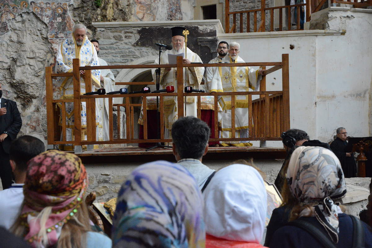Σε έντονα συγκινησιακά φορτισμένη ατμόσφαιρα τελέστηκε σήμερα η Θεία Λειτουργία στην Ιερά Πατριαρχική και Σταυροπηγιακή Μονή της Παναγίας Σουμελά της Τραπεζούντας, προεξάρχοντος του Παναγιωτάτου Οικουμενικού Πατριάρχου κ.κ. Βαρθολομαίου, συμπαραστατούμενου από τους Σεβ. Μητροπολίτες Γέροντα Χαλκηδόνος κ. Εμμανουήλ και Φιλαδελφείας κ. Μελίτωνα.