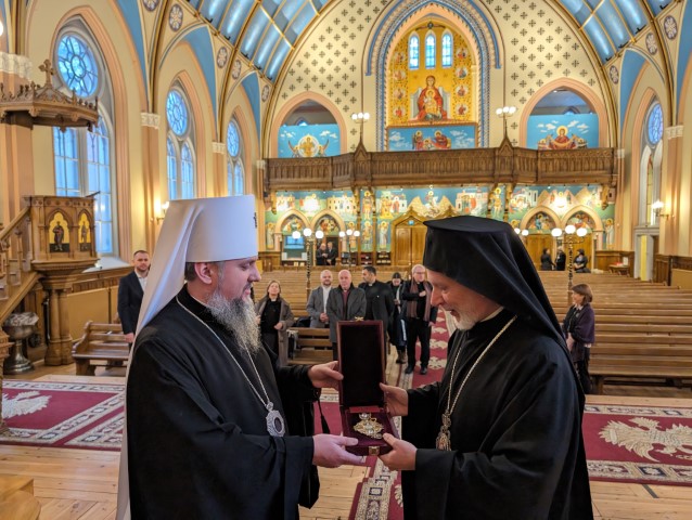 Ιδιαιτέρως, θα ήθελα, με την παρούσα ευκαιρία, να ευχαριστήσω τον Σεβ. Μητροπολίτη Ισπανίας και Πορτογαλίας κ. Βησσαρίωνα, με την συγκατάθεση του οποίου, εφέτος τα Χριστούγεννα θα αποσταλεί Ουκρανός κληρικός του στη Νορβηγία και την Στοκχόλμη, ώστε να ακουστεί η Θεία Λειτουργία και στην Ουκρανική γλώσσα.