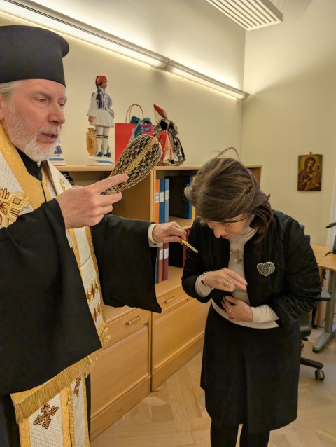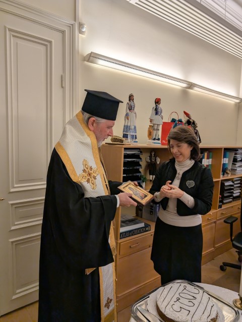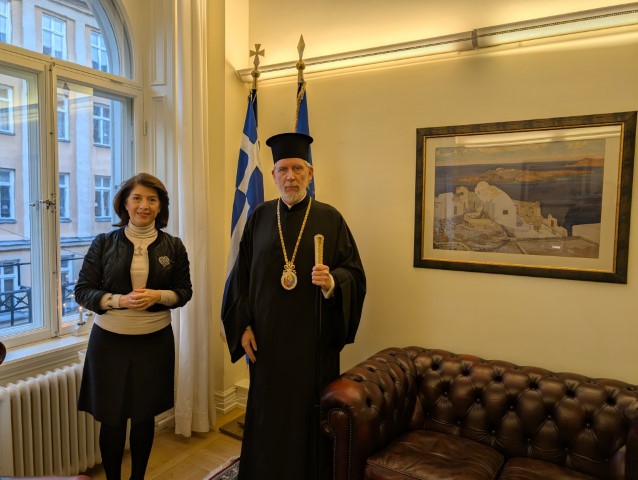 Το μεσημέρι της Πέμπτης, 16 Ιανουαρίου 2025, ο Σεβ. Μητροπολίτης Σουηδίας και πάσης Σκανδιναυΐας κ. Κλεόπας, συνοδευόμενος από τον Πανοσιολ. Αρχιμανδρίτη κ. Βαρθολομαίο Ιατρίδη, Εφημέριο του Καθεδρικού Ναού Αγίου Γεωργίου Στοκχόλμης, ευγενώς προσκληθείς υπό της Εξοχωτάτης Πρέσβεως της Ελλάδος στην Σουηδία κ. Αικατερίνης Φουντουλάκη, μετέβη στην έδρα της Ελληνικής Πρεσβείας, όπου αρχικώς ετέλεσε την ακολουθία του αγιασμού, ενώ στην συνέχεια ευλόγησε την Βασιλόπιττα.