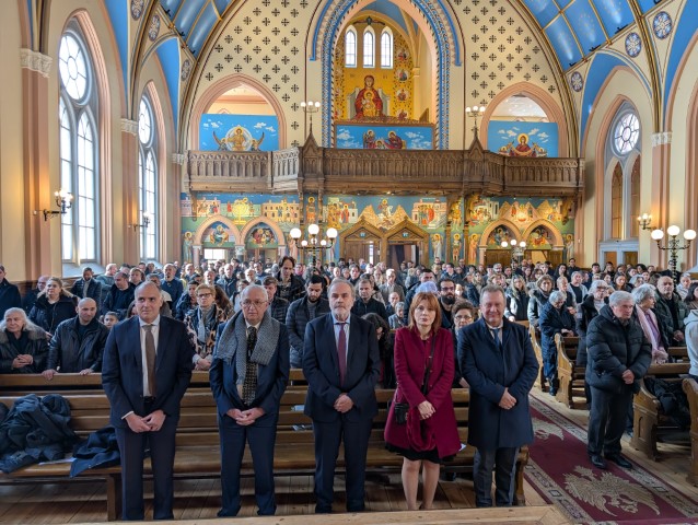 Κατακλείσας, καλωσόρισε και παρουσίασε τους εκκλησιασθέντες εξ Ελλάδος, Ελλογιμ. κ. Γεώργιο Πηλιχό, συγγραφέα της μελέτης: «Άουσβιτς: Έλληνες-Αριθμός Μελλοθανάτου», καθώς και τους συνοδούς του, Εντιμ. κ. Εμμανουήλ Τουφεξή, Διευθυντή του Φιλανθρωπικού Οργανισμού Agape, και την συνεργάτιδά του Ευγεν. κ. Γεωργία Καρασαββίδου, εκ Θεσσαλονίκης, καθώς και τους δικηγόρους εξ Αθηνών κ.κ. Κωνσταντίνο και Δημήτριο Σφακιανάκη.