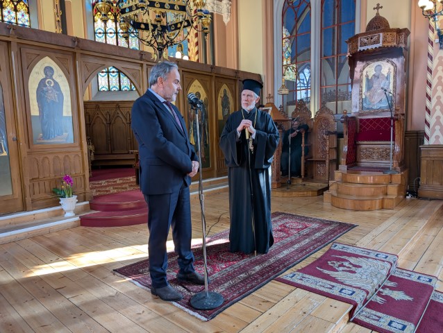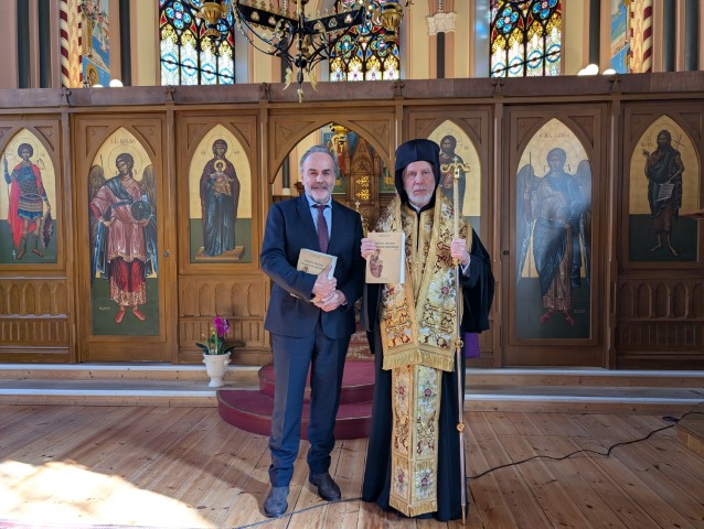 Ο Σεβασμιώτατος ευχαρίστησε και συνεχάρη τον κ. Πηλιχό για την ομιλία του, διεβίβασε στον ίδιο και την συνοδεία του την ευλογία και τις πατρικές ευχές της Α. Θ. Παναγιότητος, του Οικουμενικού Πατριάρχου κ.κ. Βαρθολομαίου και του προσέφερε την δίτομη μελέτη του, με την ανέκδοτη αλληλογραφία του Αγίου Νεκταρίου Πενταπόλεως, που εξεδόθη από την Αποστολική Διακονία της Εκκλησίας της Ελλάδος.