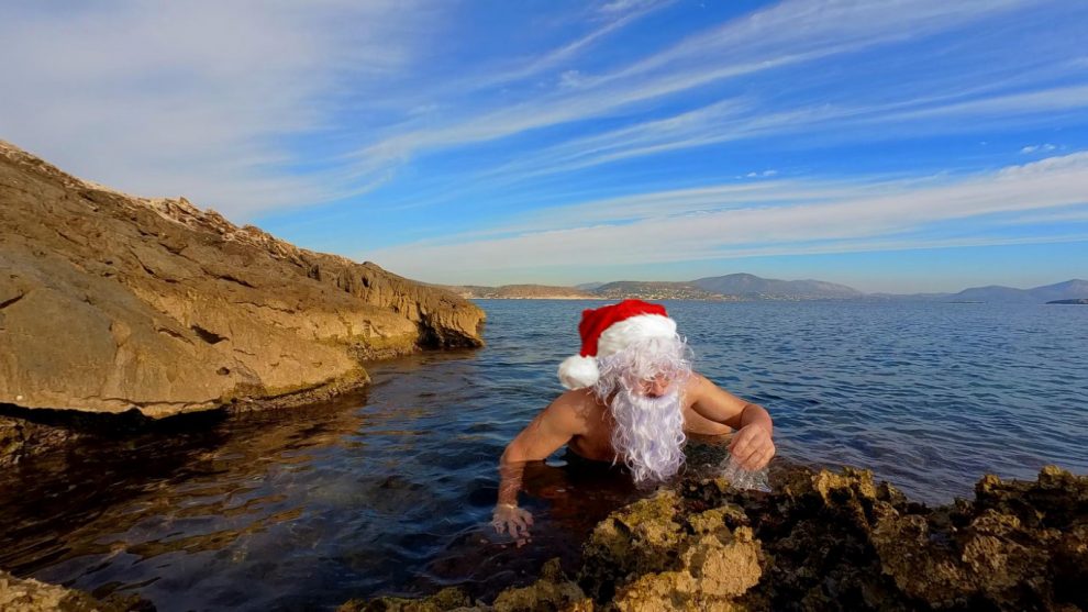 Ο ηλικιωμένος με μακρυά άσπρα μαλλιά και γένεια μετά δυσκολίας κατάφερε να αναρριχηθεί σε κάτι κοφτερά βράχια. Τα αγριεμένα κύματα λυσσομανούσαν χτυπώντας το γέρικο μα γραμμωμένο σωματότυπο οφείλουμε να πούμε και δυσχέραιναν την όλη του προσπάθεια!!! Αυτός όμως κάπου εκεί πρέπει να έχασε και τον κλασικό κόκκινο σκούφο που φορά πάντα και ήταν τσίτα στα νεύρα μιας και ήταν χειροποίητος αγαπημένο δώρο από την Άει Βασίλινα!!!