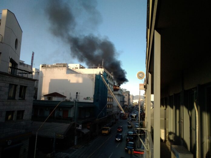 Πυρκαγιά σημειώθηκε λίγο πριν τις 9 το πρωί σε κτίριο σε κεντρικό ξενοδοχείο της πόλης, ενώ επί τόπου έσπευσαν οχήματα της Πυροσβεστικής με ισχυρή δύναμη πυροσβεστών. Η φωτιά προκλήθηκε από άγνωστο μέχρι στιγμής λόγο στο ρετιρέ του ξενοδοχείου δίπλα από το κτίριο γνωστής αλυσίδας καταστημάτων ηλεκτρικών ειδών, πάνω ακριβώς από τη στοά.