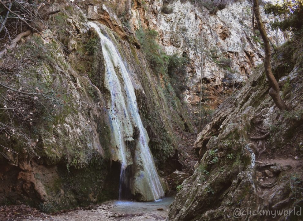 Το θέαμα είναι μοναδικό και όσο και να προσπαθήσουμε να το αποδόσουμε με λέξεις, μόνο όταν κάποιος βρεθεί εκεί μπροστά μπορεί να το συνηδειτοποιήσει. Περιτρυγιρισμένος από ένα φυσικό τοίχο από κάθετους βράχους ύψους περίπου δέκα μέτρων, που δημιουργούν ενά κρυφό ξέφωτο, πέφτει το νερό, άλλοτε ήρεμα, άλλοτε πιο δυναμικά (αναλόγως την εποχή που θα βρεθεί κανείς εκεί), δημιουργώντας ένα θέαμα που κυριολεκτικά σου κόβει την ανάσα. Ήχοι, χρώματα από τα παιχνδίσματα του φωτός με το νερό, ηρεμία απόλυτη. Αυτά συναντάς σαν βρεθείς εκεί. Αυτομάτως μεταφέρεσαι αλλού, σε μέρη γαλήνια, μακριά από τις σκοτούρες και το άγχος της καθημερινότητας. Ο νους ηρεμεί, οι ήχοι της φύσης αντικαθιστούν την φασαρίας της πόλης. Στέκεσαι μαγεμένος και συλλογίζεσαι, πώς είναι δυνατόν ένα τέτοιο μέρος, να προσφέρει τόση ηρεμία και ξεκούραση. Σίγουρα άξιζε ο κόπος, ο ιδρώτας, η κούραση της διαδρομής.