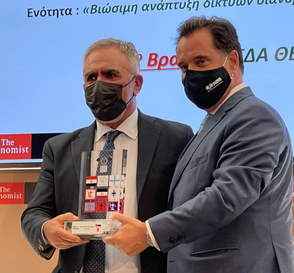 Η ΕΔΑ ΘΕΣΣ τιμήθηκε με το Βραβείο «Βιώσιμη Ανάπτυξη Δικτύων Διανομής Φυσικού Αερίου» στην Τελετή Απονομής των Green Awards στο πλαίσιο του Thessaloniki Metropolitan Summit που διοργανώθηκε από το “The Economist”.