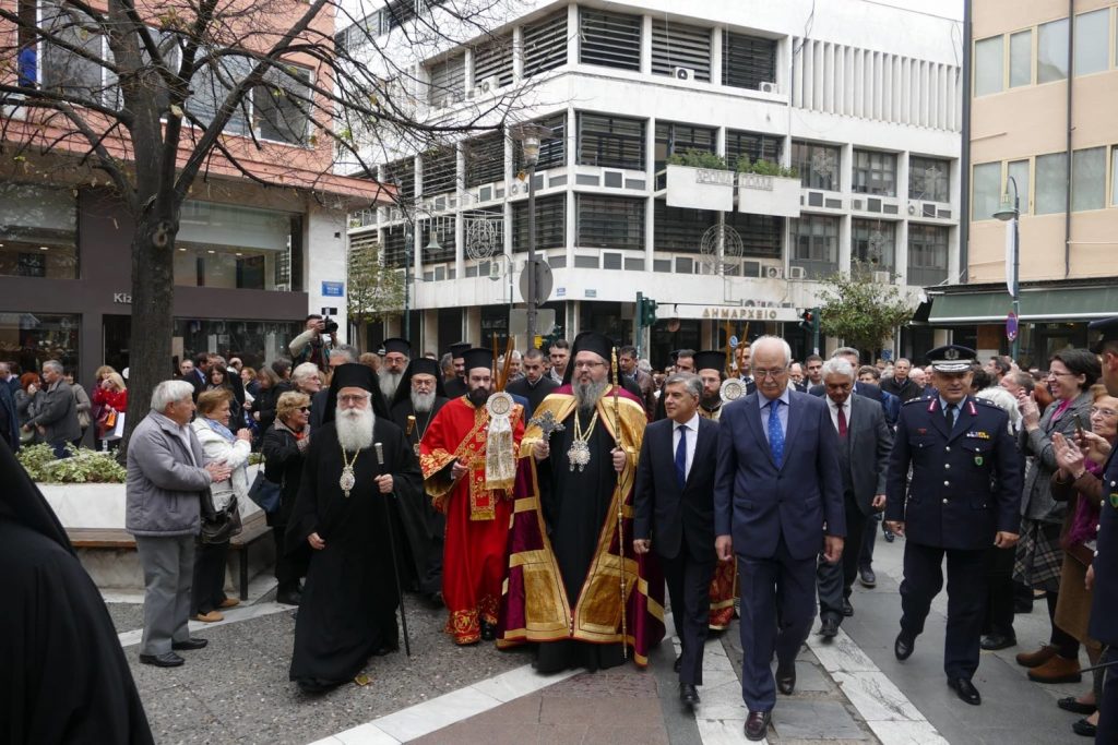 Η επίσημη υποδοχή έγινε μπροστά στο Δημαρχείο της πόλης, ενώ στην Κεντρική Πλατεία ο δήμαρχος Λαρισαίων Απόστολος Καλογιάννη προσφώνησε τον κ. Ιερώνυμο.