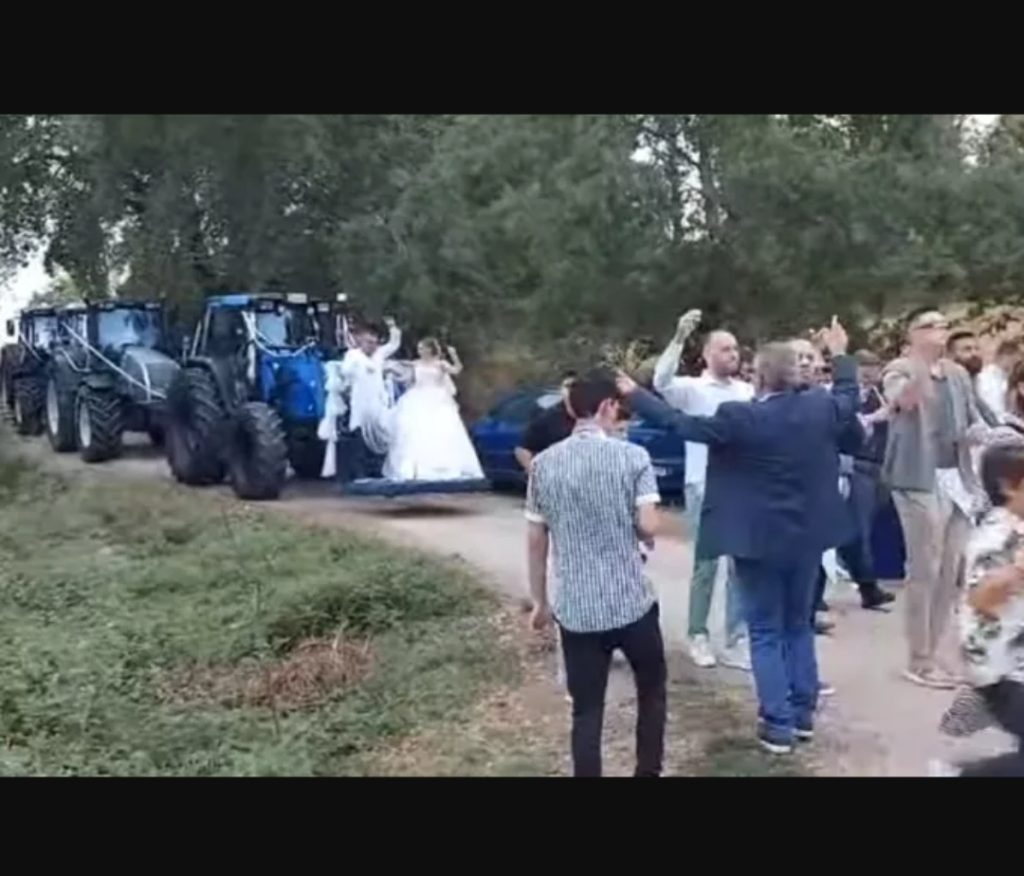 Τα κορναρίσματα των στολισμένων «τρακτέρ-γίγας» και οι μοναδικοί ήχοι των χάλκινων οργάνων ξεσήκωσαν χθες τους καλεσμένους στον γάμο του προέδρου της Τοπικής Κοινότητας του Χορηγού Βοϊου, στην Κοζάνη.