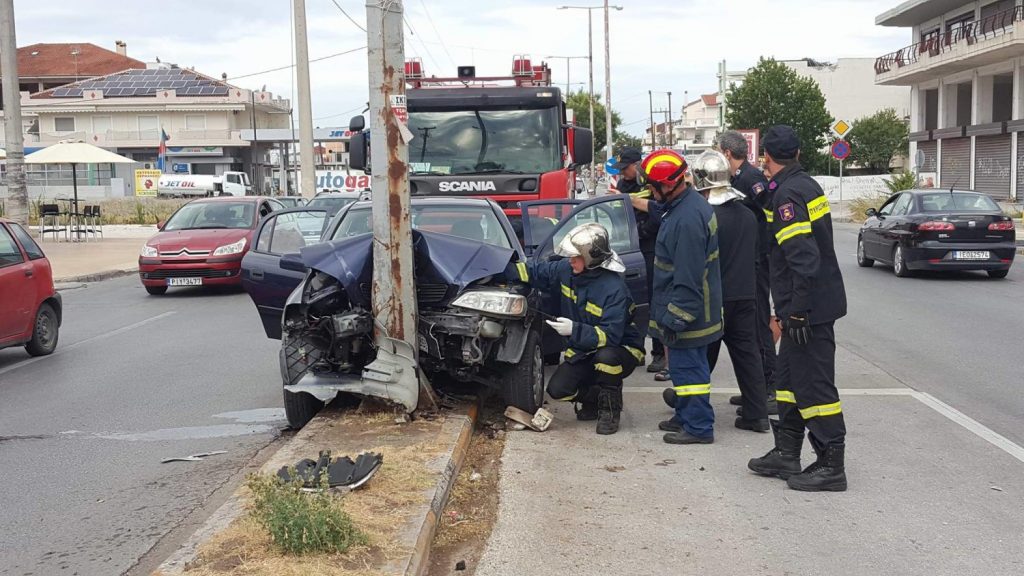 Αναλυτικά, από άγνωστη – μέχρι στιγμής – αιτία αυτοκίνητο ξέφυγε από την πορεία του και «καρφώθηκε» σε κολώνα.