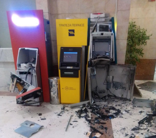 Οικονομία δυνάμεων από τους ληστές των ΑΤΜ που αποφεύγουν, όπως δείχνει η φωτογραφία, τις άσκοπες κινήσεις. Ανατίναξαν τα δύο από τα τρία ΑΤΜ που βρίσκονταν εντός του εμπορικού κέντρου στο Μαρούσι, αφήνοντας ανέπαφο εκείνο της Τράπεζας Πειραιώς που είναι εξοπλισμένο με το «έξυπνο» σύστημα που αχρηστεύει τα χαρτονομίσματα όταν γίνεται απόπειρα ληστείας.