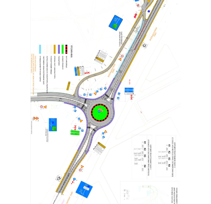 Κατασκευάζεται κεντρική πλακοστρωμένη νησίδα διαχωρισμού των ρευμάτων κυκλοφορίας, λωρίδα εξόδου από το Διαχρονικό Μουσείο και επενδεδυμένη τριγωνική τάφρος στο ρεύμα κυκλοφορίας προς Αθήνα