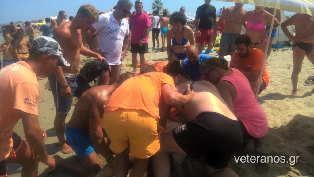 Στο κατόπι των Ναυαγοσωστών άρχισαν να τρέχουν και οι Αξιωματικοί λουόμενοι του Στρατοπέδου ,αλλά και τα Στελέχη με το Ιατρικό Τημ των ΚΑΑΥ να έφτασε άμεσα με Ιατρικό εξοπλισμό! Να σημειωθεί οι στο σημείο και εδώ πρέπει να το επισημάνουμε έφτασε και Ναυαγώστης του Δήμου τρέχοντας με φιάλη Οξυγόνου που χορηγήθηκε άμεσα στον άνθρωπο που κινδύνευε !