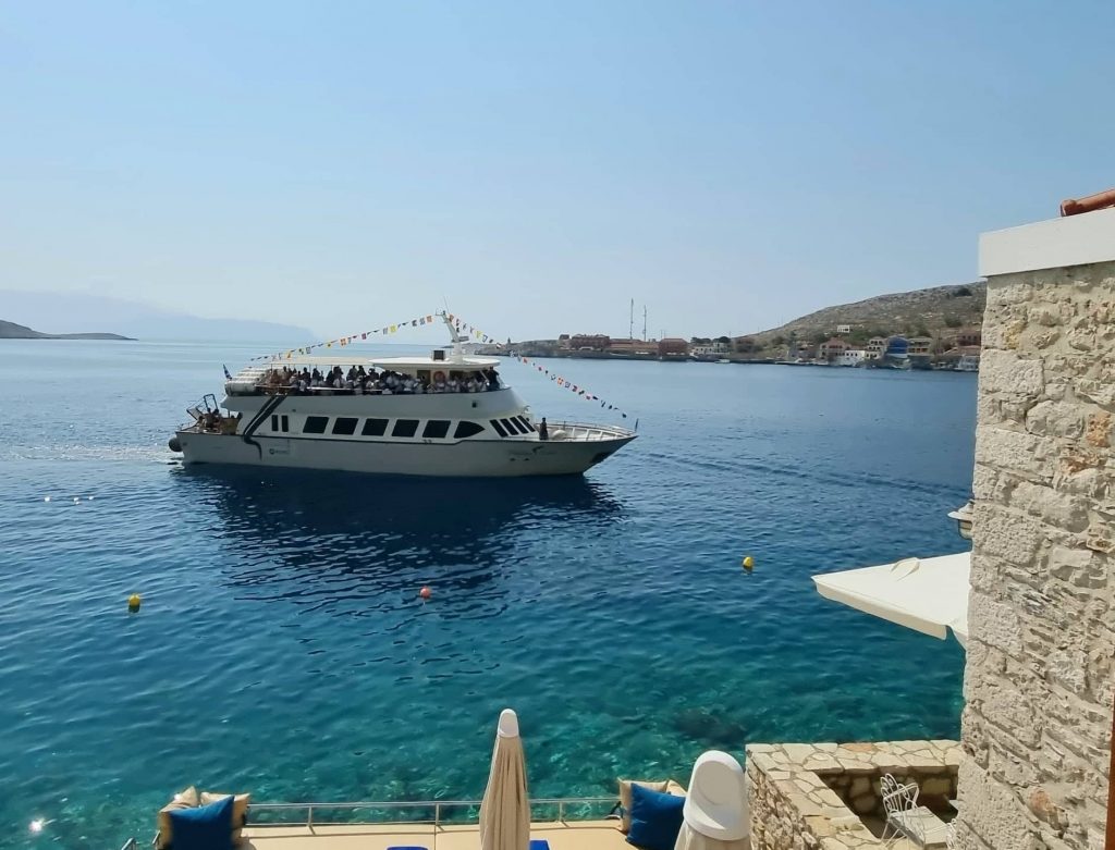 Νωρίτερα και όπως κατέγραψε το trikalavoice.gr υπήρξε εντυπωσιακή είσοδος στο λιμάνι του πλοιαρίου “Fedon” το οποίο μετέφερε την μπάντα που παιάνιζε Χαλκίτικους σκοπούς. Δείτε χαρακτηριστικά βίντεο και εικόνες: