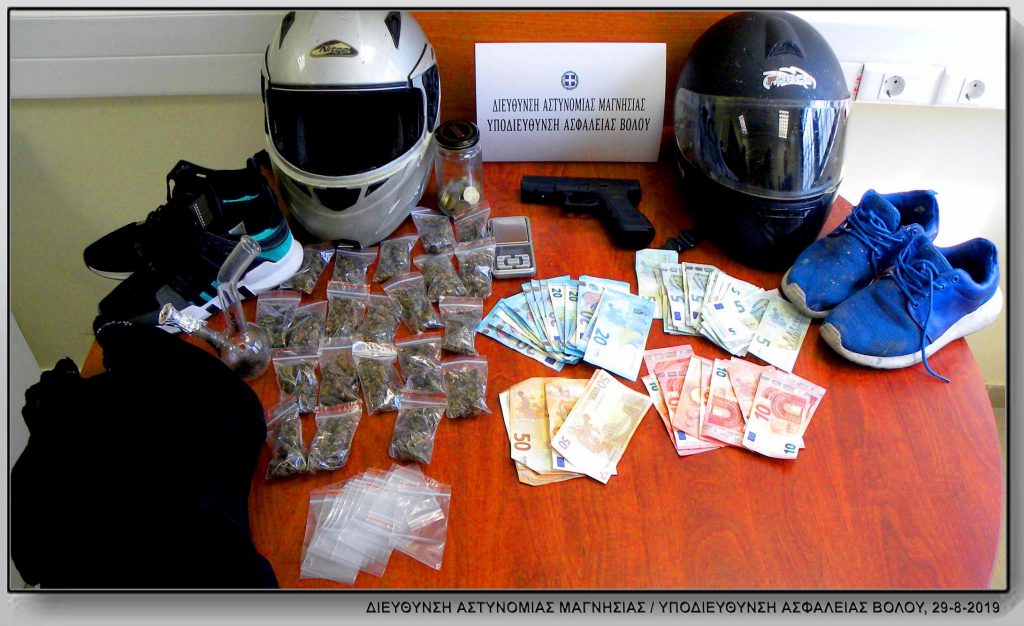 Συνελήφθησαν, σήμερα (29-08-2019) το πρωί στο Βόλο, από αστυνομικούς της προαναφερόμενης Υπηρεσίας με τη συνδρομή αστυνομικών του Αστυνομικού Τμήματος Νοτίου Πηλίου, τρία άτομα, ηλικίας 22, 19 και 34 ετών, σε βάρος των οποίων σχηματίστηκε δικογραφία για τα, κατά περίπτωση, αδικήματα της συγκρότησης εγκληματικής ομάδας, της ληστείας, της παράβασης των νόμων περί όπλων και περί ναρκωτικών, καθώς και της αντίστασης.