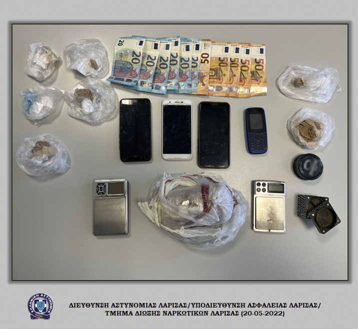 Συνελήφθησαν, χθες (19-05-2022) το μεσημέρι και το απόγευμα στην ευρύτερη περιοχή της Λάρισας και του Δήμου Τυρνάβου, κατόπιν συντονισμένης επιχείρησης, από αστυνομικούς του Τμήματος Δίωξης Ναρκωτικών Λάρισας σε συνεργασία με αστυνομικούς της Ομάδας Πρόληψης και Καταστολής Εγκληματικότητας (Ο.Π.Κ.Ε.) Λάρισας, -4- ημεδαποί άνδρες, σε βάρος των οποίων σχηματίστηκε δικογραφία για σύσταση εγκληματικής ομάδας και παράβαση της νομοθεσίας περί ναρκωτικών.