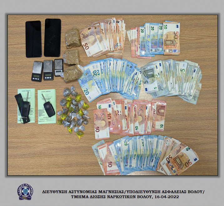 Σε οργανωμένη αστυνομική επιχείρηση που πραγματοποιήθηκε χθες (15-04-2022) το πρωί στο Βόλο, από αστυνομικούς της Υποδιεύθυνσης Ασφάλειας Βόλου, σε συνεργασία με αστυνομικούς της Ομάδας Πρόληψης και Καταστολής Εγκληματικότητας (Ο.Π.Κ.Ε.) Βόλου και της Ομάδας Δίκυκλης Αστυνόμευσης (ΔΙ.ΑΣ.) Βόλου, συνελήφθησαν -6- ημεδαποί, -5- άνδρες και -1- γυναίκα, ως μέλη της εγκληματικής ομάδας που διακινούσε ναρκωτικές ουσίες.