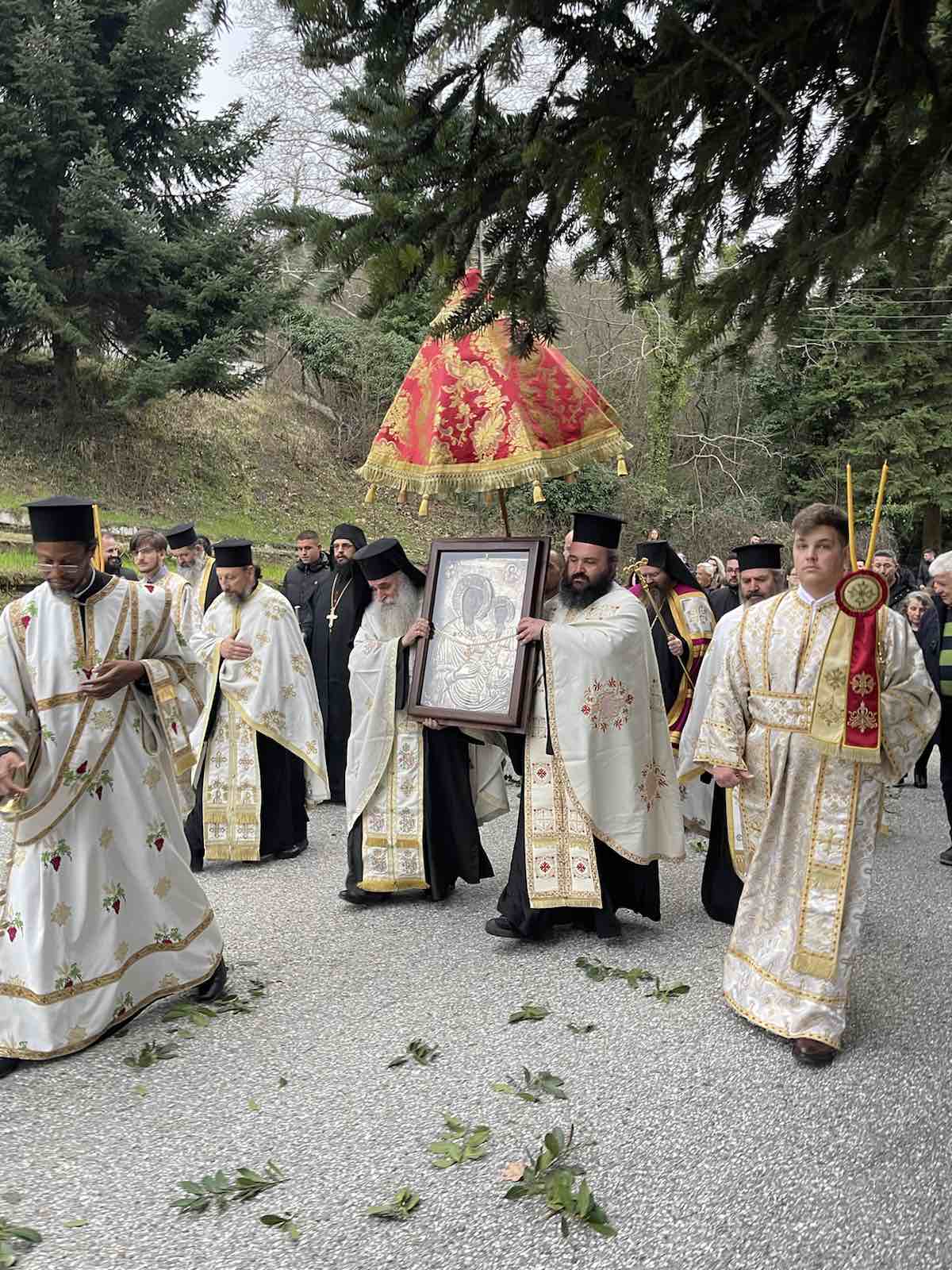 Το απόγευμα του Σαββάτου 16 Μαρτίου έλαβε χώρα, με λαμπρότητα και θρησκευτική ευλάβεια, η υποδοχή της ιστορικής και εφέστιας Εικόνας της Παναγίας Οδηγήτριας, στην Ιερά Μονή Εισοδίων της Θεοτόκου Πέτρας Ολύμπου. Την Εικόνα, υποδέχθηκε ο Σεβασμιώτατος Μητροπολίτης Κίτρους, Κατερίνης και Πλαταμώνος κ. Γεώργιος, κληρικοί, οι τοπικές Αρχές και πλήθος πιστών.