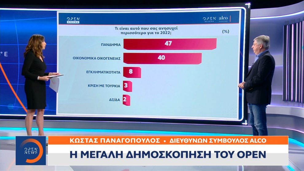 Δείτε εδώ αναλυτικά τα ευρήματα της δημοσκόπησης της Alco για το κεντρικό δελτίο του OPEN: