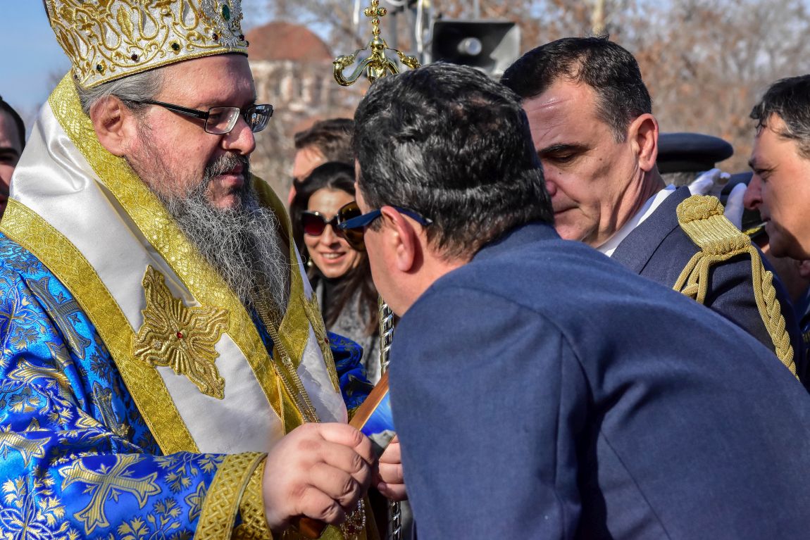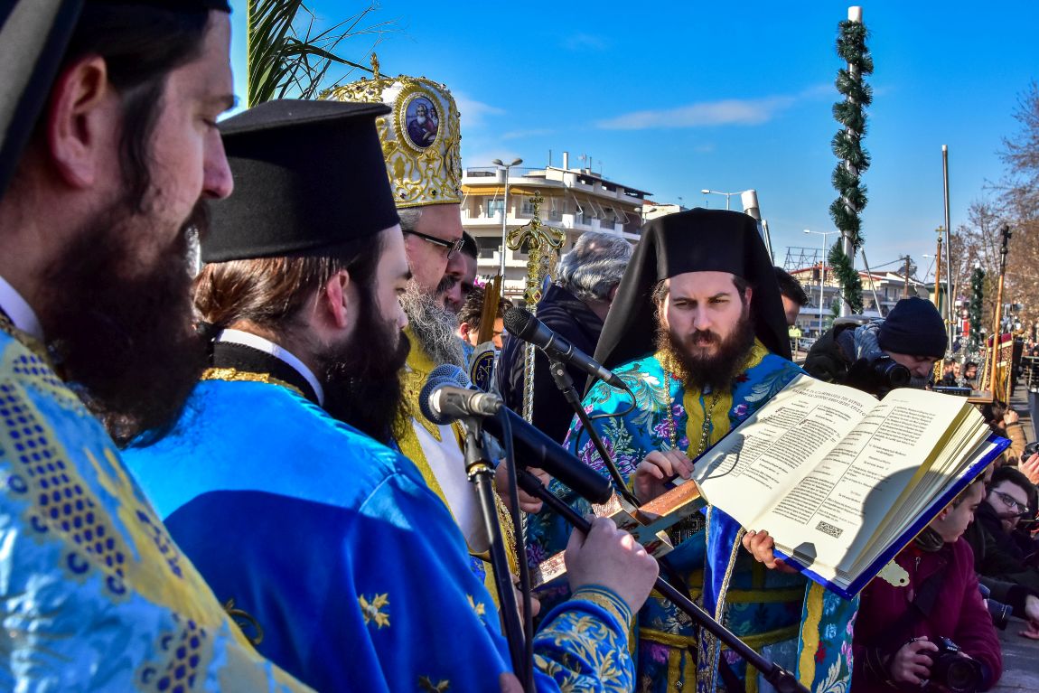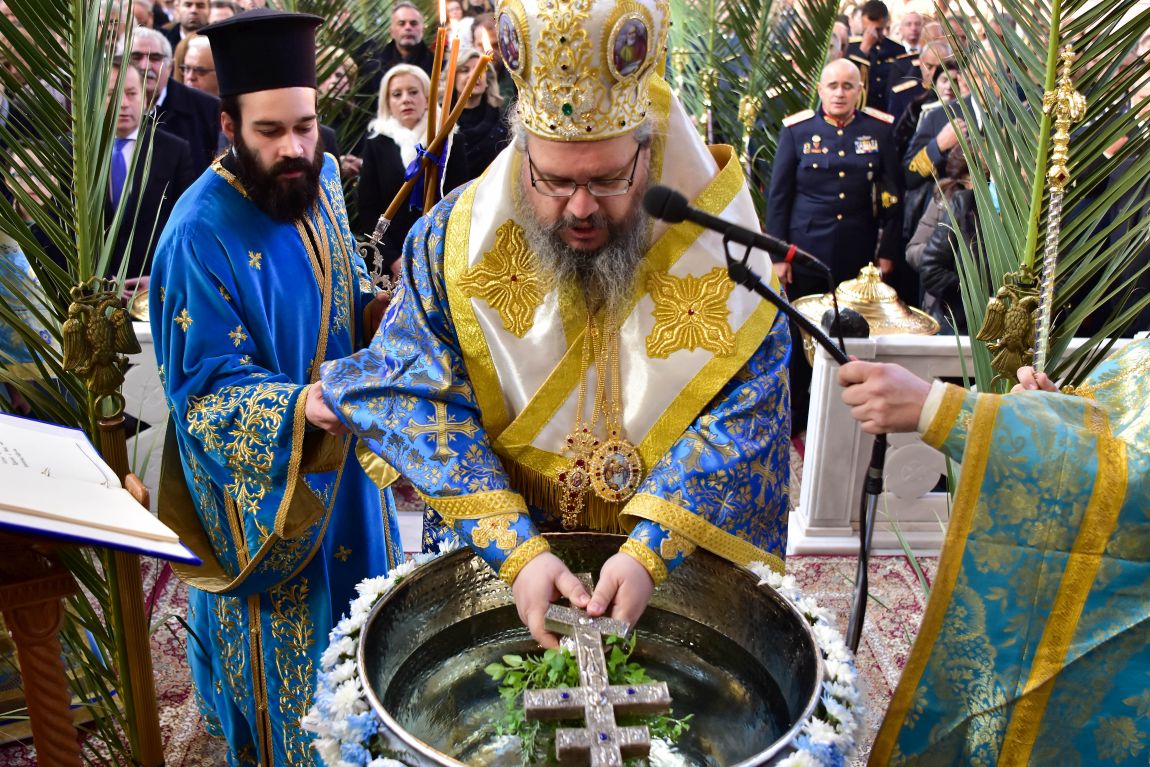 Με ιερά κατάνυξη και μεγαλοπρέπεια εορτάσθηκαν παρά το δριμύ ψύχος και τον παγετό, τα Άγια Θεοφάνεια σε όλη την περιφέρεια της Ιεράς Μητροπόλεως Λαρίσης και Τυρνάβου. Επίκεντρο των εκδηλώσεων ο Μητροπολιτικός Ιερός Ναός του Αγίου Αχιλλίου όπου ο Σεβασμιώτατος Μητροπολίτης Λαρίσης και Τυρνάβου κ. Ιερώνυμος τέλεσε την Θεία Λειτουργία και τον Μέγα Αγιασμό, παρουσία του Υφυπουργού Αγροτικής Ανάπτυξης κ. Βασιλείου Κόκκαλη και των πολιτικών και στρατιωτικών Αρχών του Νομού και ακολούθως έρριψε τον Τίμιο Σταυρό στα παγωμένα νερά του Πηνειού ποταμού. Τον σταυρό ανέσυρε φέτος για πρώτη φορά ο Λαρισαίος φοιτητής κ. Χρήστος Νάρης, ο οποίος διδακτικότατα εδήλωσε πώς έπεσε στα παγωμένα νερά για να λάβει την ευλογία και τον φωτισμό του Κυρίου, κάτι που είχε εδώ και πολύ καιρό στην σκέψη του και ευχαρίστησε τον Θεό, που τον αξίωσε να ικανοποιήσει την ιερά αυτή επιθυμία του.