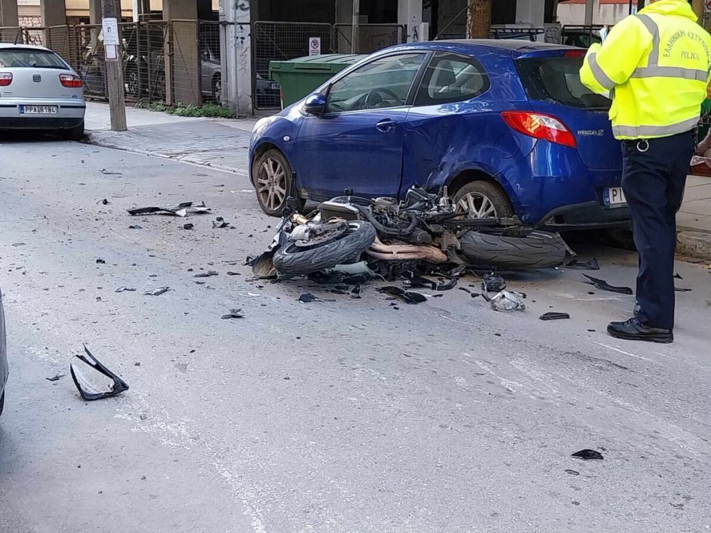 Το τροχαίο σημειώθηκε χθες, πρωινό Σαββάτου 28ης Οκτωβρίου, στο κέντρο της Λάρισας στη συνοικία Αγίου Κωνσταντίνου.