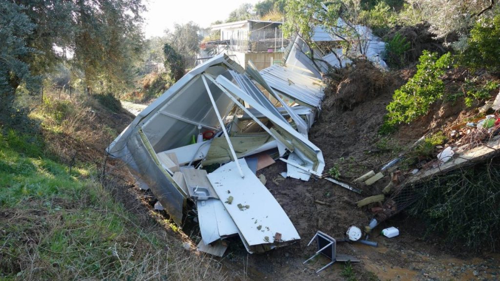 Μέρος της πλαγιάς κατέρρευσε και το οίκημα συμπαρασύρθηκε περισσότερο από δέκα μέτρα και έπεσε μέσα στο ρέμα.
