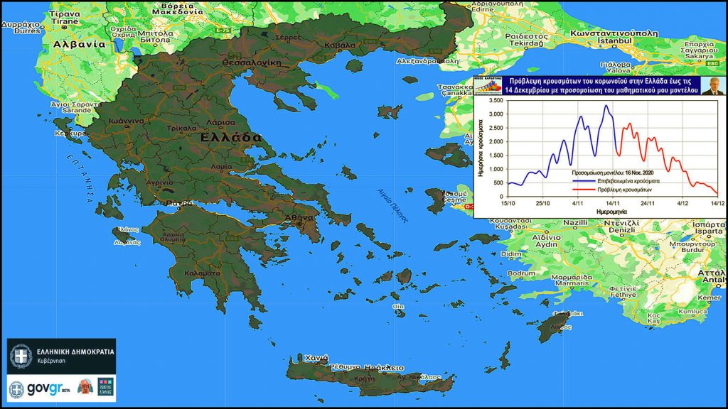 Στο παρακάτω γράφημα φαίνονται τα αποτελέσματα της προσομοίωσης του μοντέλου μέχρι τις 14 Δεκεμβρίου, από το οποίο προκύπτουν: