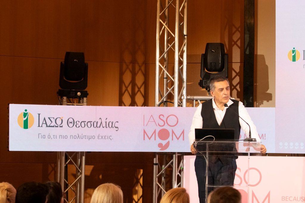 Αυτό άλλωστε το ενδιαφέρον, υπογράμμισε στην εισαγωγική του ομιλία, εκ μέρους του ΙΑΣΩ Θεσσαλίας, ο Πρόεδρος του επιστημονικού του συμβουλίου κ. Απόστολος Κομνός. Αφού ευχαρίστησε θερμά το πυκνό ακροατήριο για την συμμετοχή του, τόνισε ότι το IASO MOM event είναι το πρώτο που διοργανώνεται στην περιοχή μας με την ελπίδα να γίνει θεσμός, ώστε οι γυναίκες να ενημερώνονται, να νιώθουν σίγουρες και να κάνουν πολλά και γερά παιδιά. Τα κίνητρα που χρειάζονται για να προχωρήσει ένα ζευγάρι στην απόκτηση παιδιών, συμπλήρωσε, πρέπει να είναι σοβαρά. Αυτό που μπορώ να πω με βεβαιότητα όμως, είναι πως στο ΙΑΣΩ Θεσσαλίας το ταξίδι αυτό της εγκυμοσύνης, της μητρότητας, του τοκετού γίνεται πιο εύκολο, γίνεται με ασφάλεια και σεβασμό, γίνεται με αγάπη για τη μαμά και το βρέφος. Είναι χαρά μας, κατέληξε ο κ. Κομνός, που 14 χρόνια τώρα, οι περισσότερες μητέρες στην κεντρική Ελλάδα, έχουν γεννήσει τα παιδιά τους στο ΙΑΣΩ Θεσσαλίας. Είναι τιμή μας που 14 χρόνια τώρα, οι σπουδαιότεροι γιατροί της περιοχής και όχι μόνο, συνεργάζονται με το ΙΑΣΩ Θεσσαλίας».