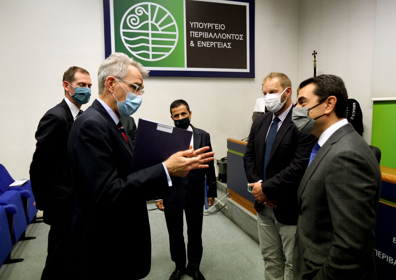 Ο Υπουργός Περιβάλλοντος και Ενέργειας, Κώστας Σκρέκας, παρακολούθησε μαζί με τον Αμερικανό Πρέσβη στην Ελλάδα, Τζέφρι Πάιατ, έκθεση που παρουσίασε κλιμάκιο εμπειρογνωμόνων της κυβέρνησης των ΗΠΑ για τα έργα ανασυγκρότησης που έχουν υλοποιηθεί έως σήμερα στις πυρόπληκτες περιοχές.