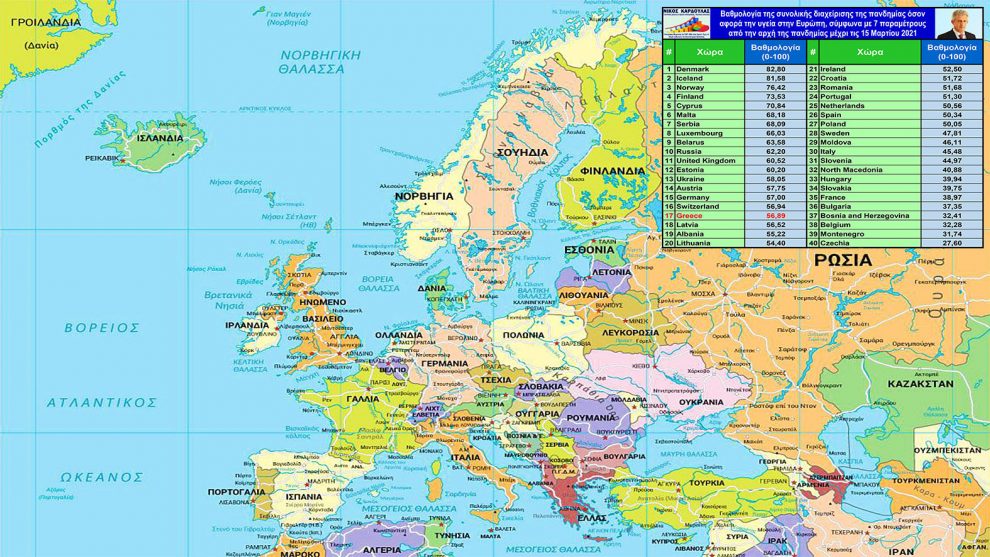 Συγκρίνοντας επτά παραμέτρους που επηρεάζουν τη δημόσια υγεία λόγω της πανδημίας, έγινε κατάταξη των ευρωπαϊκών χωρών όσον αφορά τη συνολική διαχείριση της πανδημίας στον τομέα της υγείας.